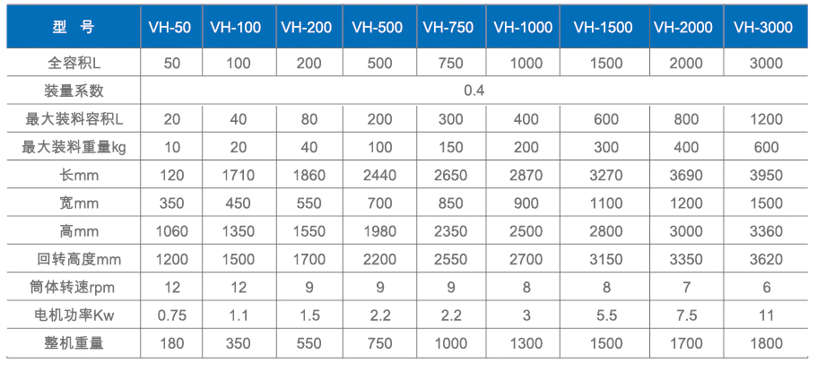 VH系列混合机适用于制药、化工、食品的干粉状、颗粒状物料的混合。该机混料桶结构独特,混合均匀,效率高,不积料。整机 结构简单,操作容易。外表面和物料接触部分均采用优质不锈钢制造,造型美观,维护、清洗方便。